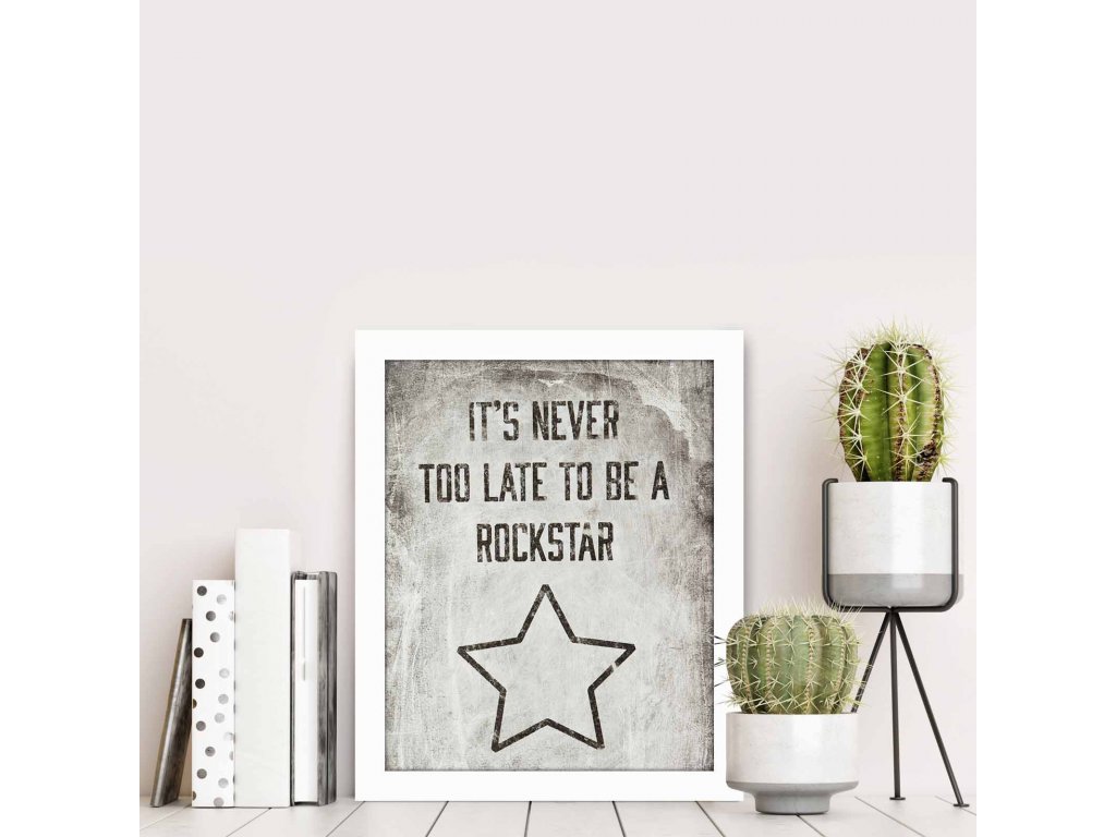 Obraz na MDF s rámem NIKDY NENÍ POZDĚ BÝT ROCKSTAR 23,5 x 28,5 cm