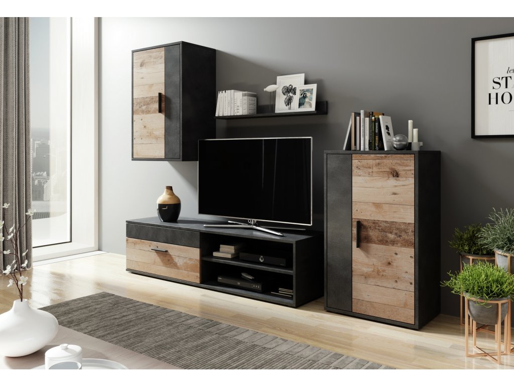 Obývací stěna BERNO staré dřevo šedá