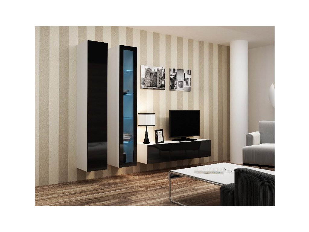 Moderní obývací stěna se skládá ze 2 závěsných skříněk a volně zavěšeným TV stolkem.