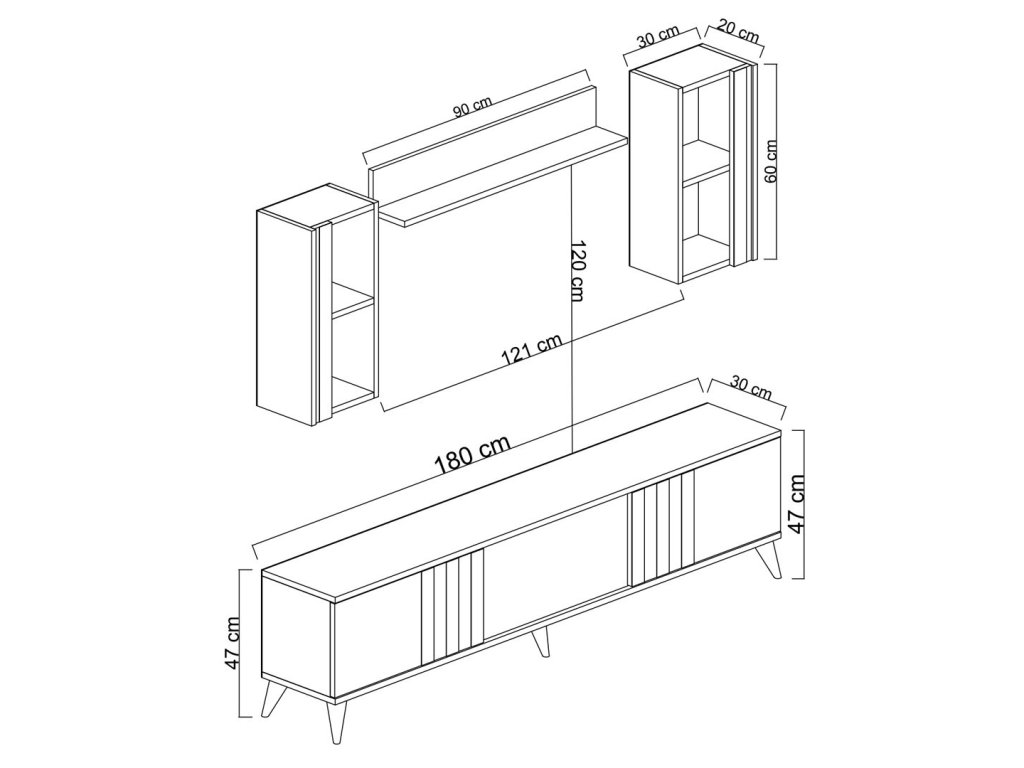 Celkové rozměry stolku: Šířka: 188 cm Hloubka: 30 cm Výška: 47 cm