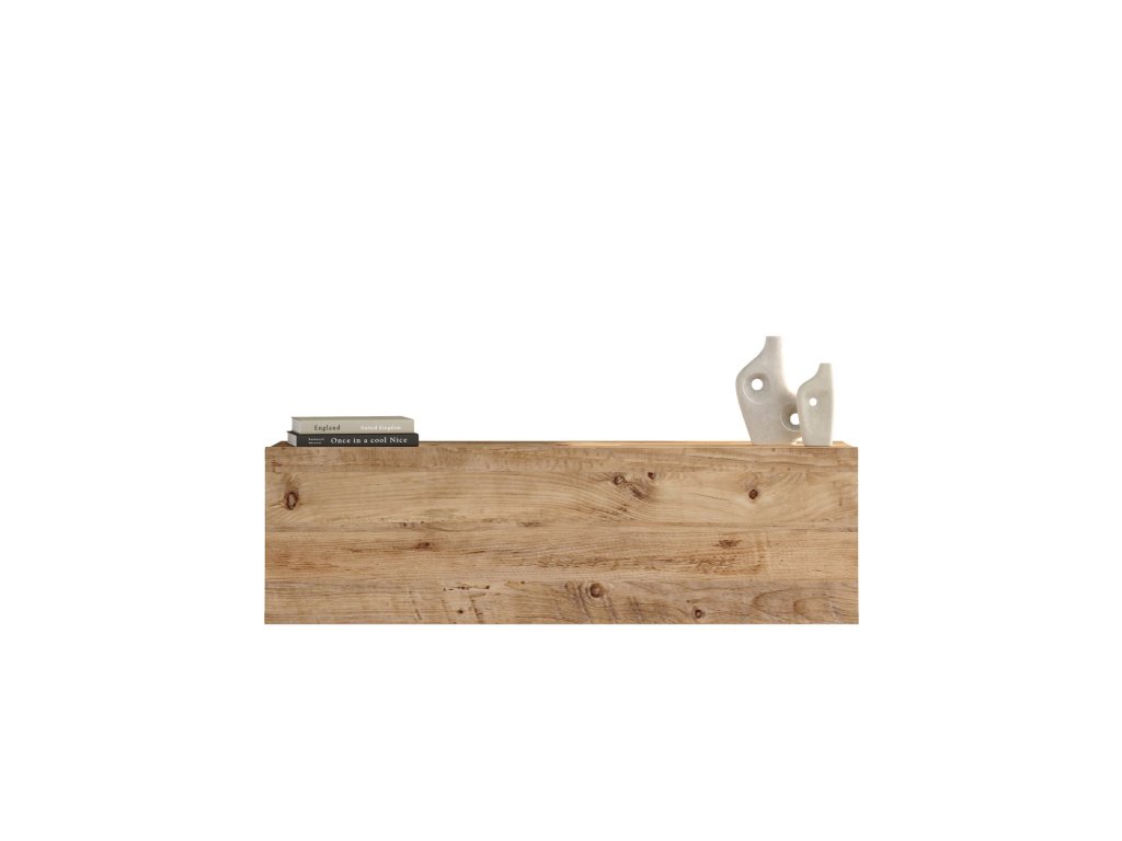 Televizní stolek FR12 je vyrobený v dekoru borovice atlantic a tvoří jej jedna skříňka schovaná za desku převyšujícími výklopnými dvířky.