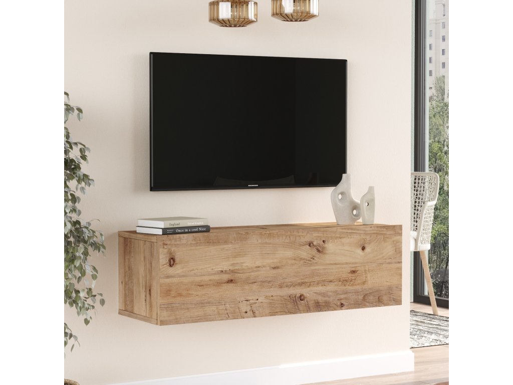 Televizní stolek FR12 je tvořen jednou prostornou skříňkou s výklopnými dvířky vyrobenými s přesahem pro snadnější otevírání v designovém dekoru borovice atlantic.