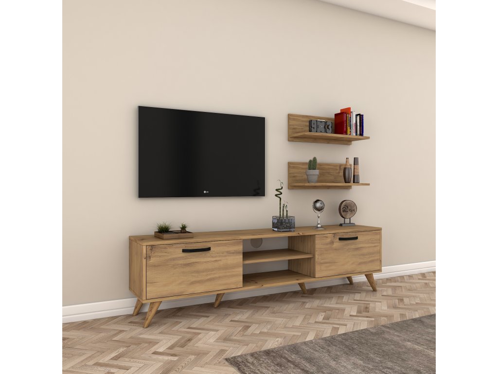 Klasický televizní stolek se dvěma policemi v dekoru ořechového dřeva. Praktický design a použité kvalitní materiály zajišťují dlouhou životnost a snadnou údržbu.