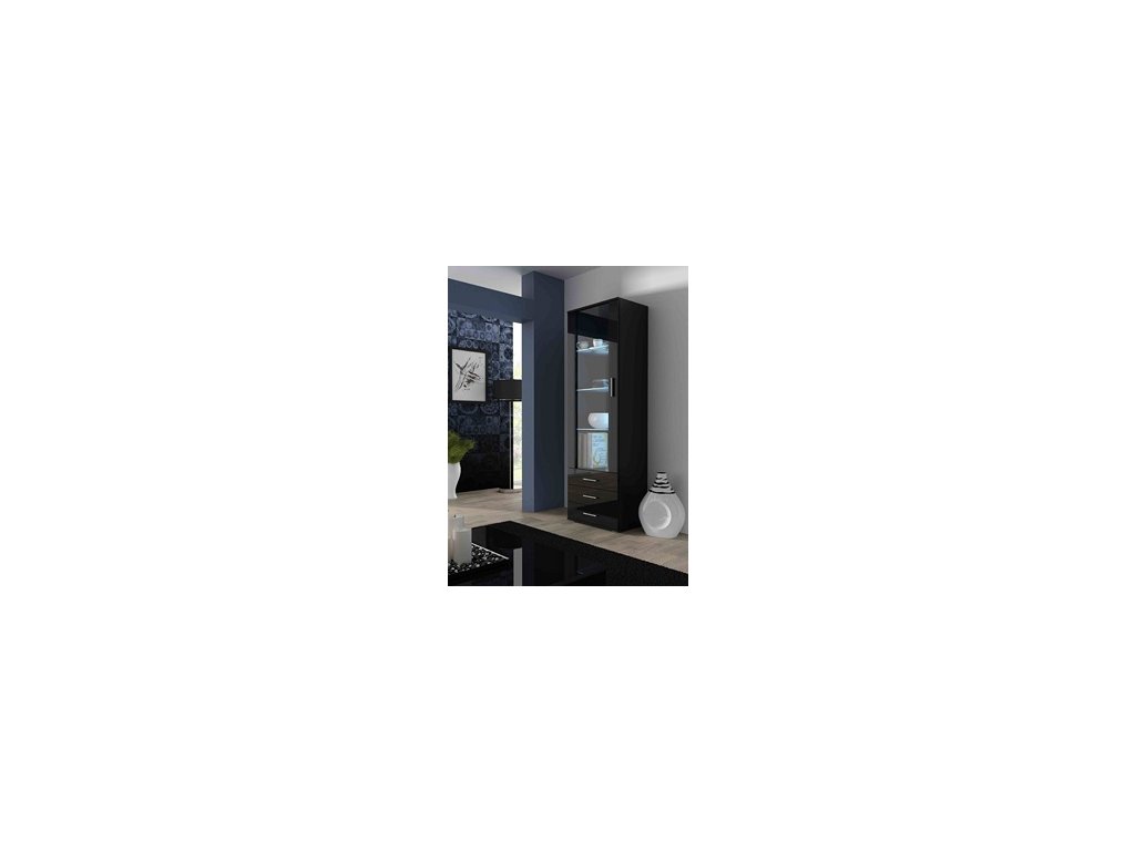 - Vitrína obsahuje 3 šuplíky a 3 skleněné police s možností LED podsvícení
