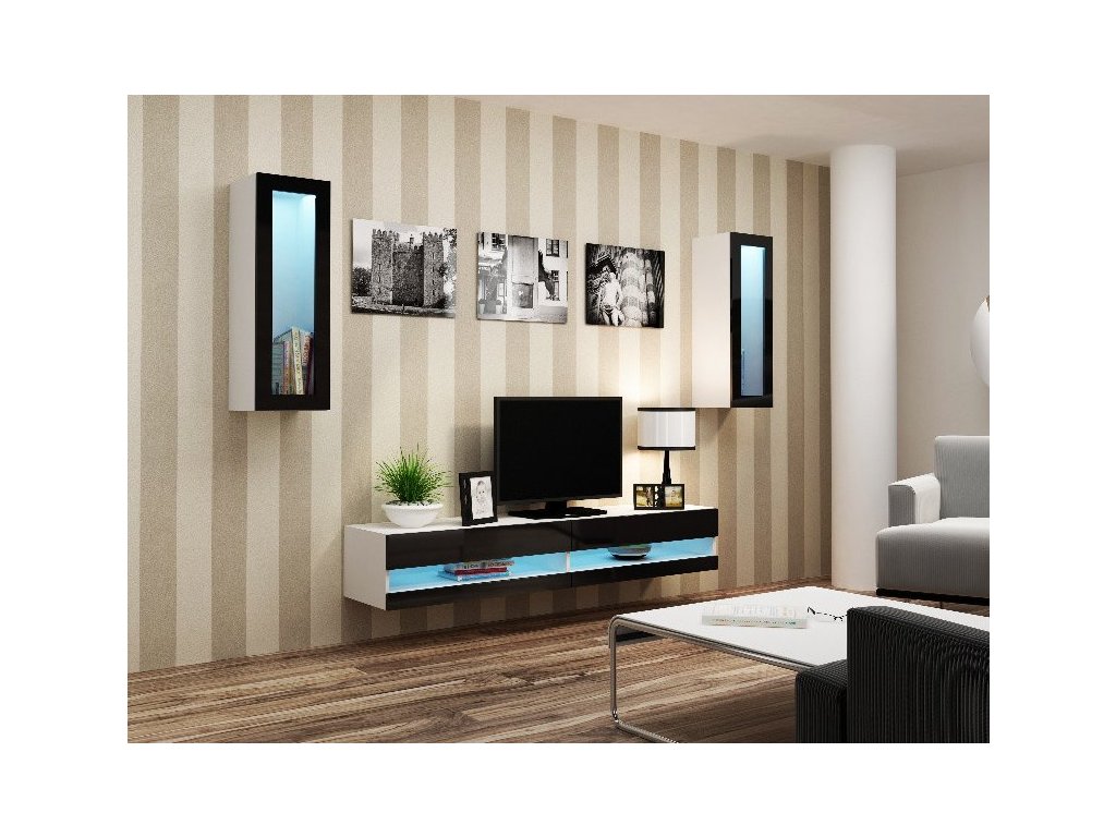 Moderní obývací stěna se skládá ze 2 závěsných skříněk a volně zavěšeným TV stolkem.