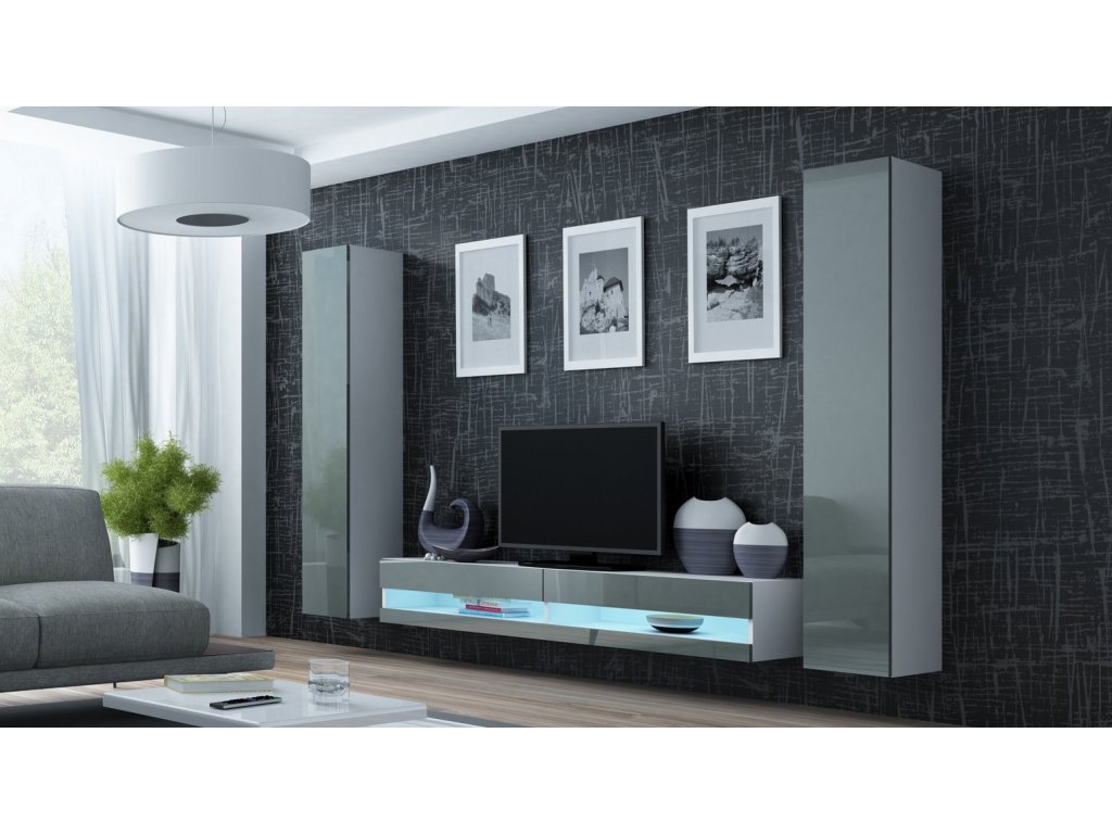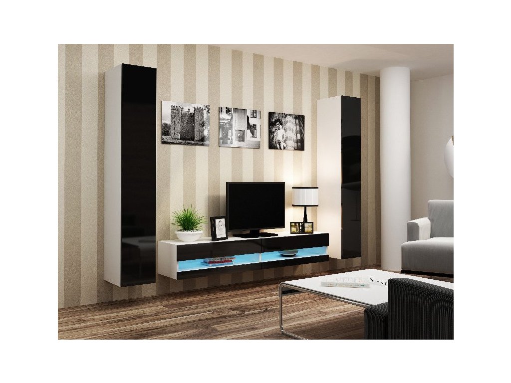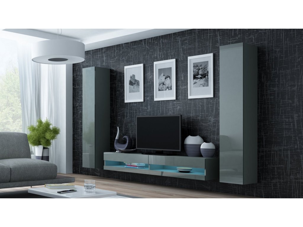 Moderní obývací stěna se skládá ze 2 závěsných skříněk a volně zavěšeným TV stolkem.