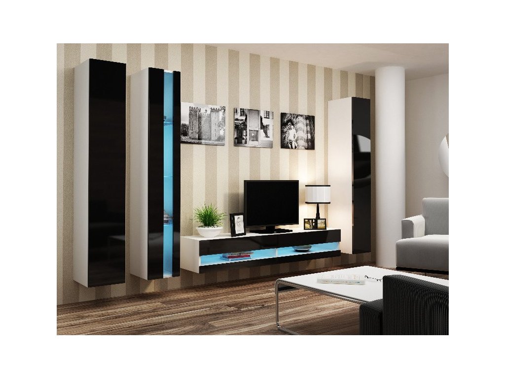 Moderní obývací/televizní stěna se skládá ze 3 závěsných skříněk a volně zavěšeným TV stolkem.