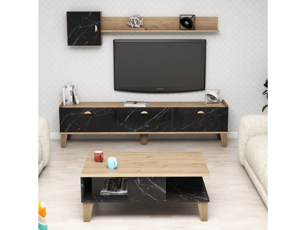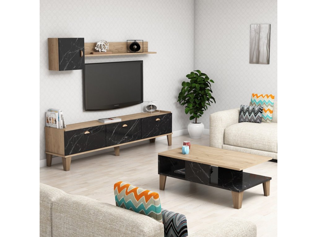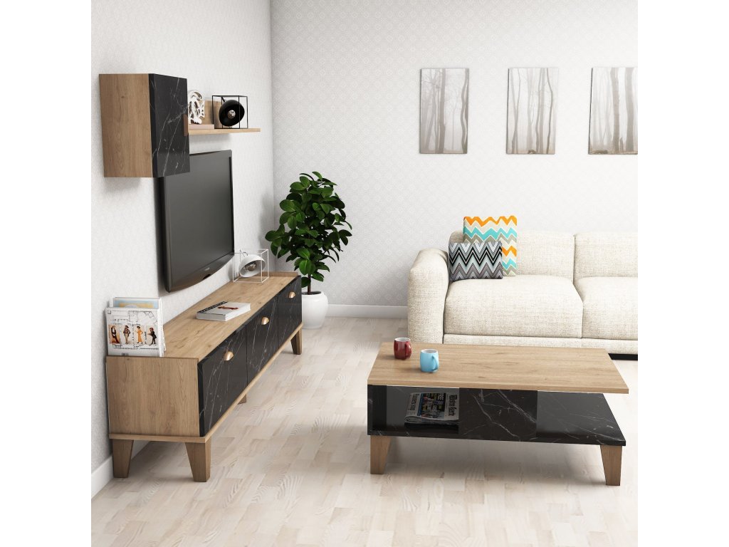 Sestava nábytku do obývacího pokoje SUMMER dub černý mramor