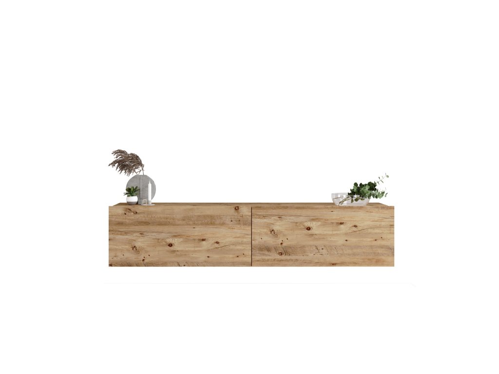 Televizní stolek FR10 je vybaven dvěma skříňkami s výklopnými dvířky v designovém dekoru borovice atlantic.