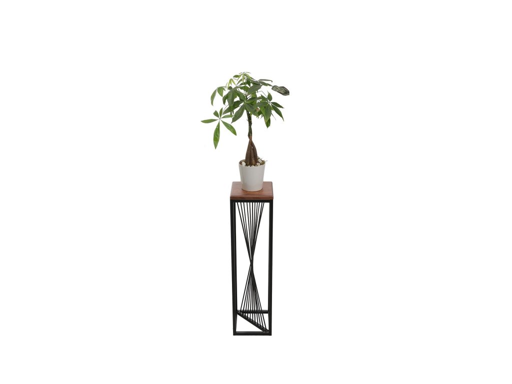Jednoduchý, dřevěný odkládací stolek na květiny nebo vedle sedací soupravy.