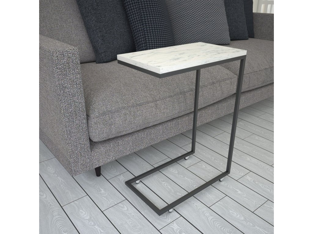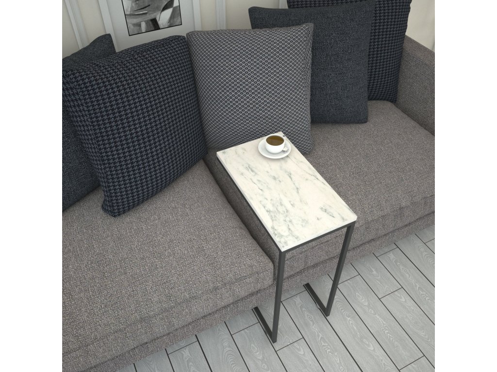 Odkládací stolek CALLEN je vyrobený z černé kovové konstrukce a z desky v bílé barvě.