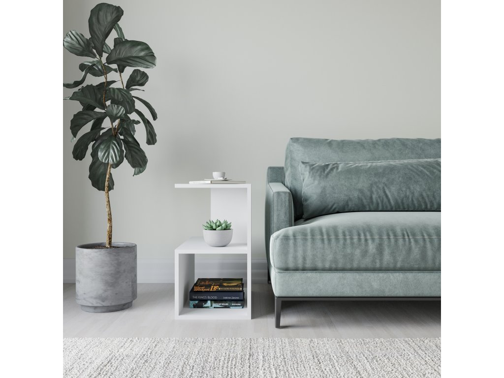 Bílý odkládací stolek LARMON Vám nabízí rozličné prostory k odložení potřebných maličkostí a jeho nabízených odkládacích prostor můžete využít v jakékoliv místnosti Vašeho domu či bytu.