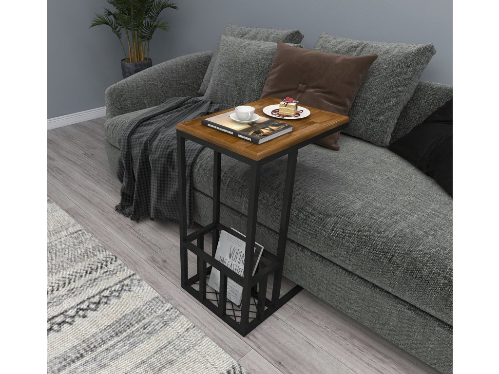 Odkládací stolek PRAG je vyrobený z černé konstrukce a desky v dekoru ořech a může být dobrým pomocníkem u křesla, gauče či postele.