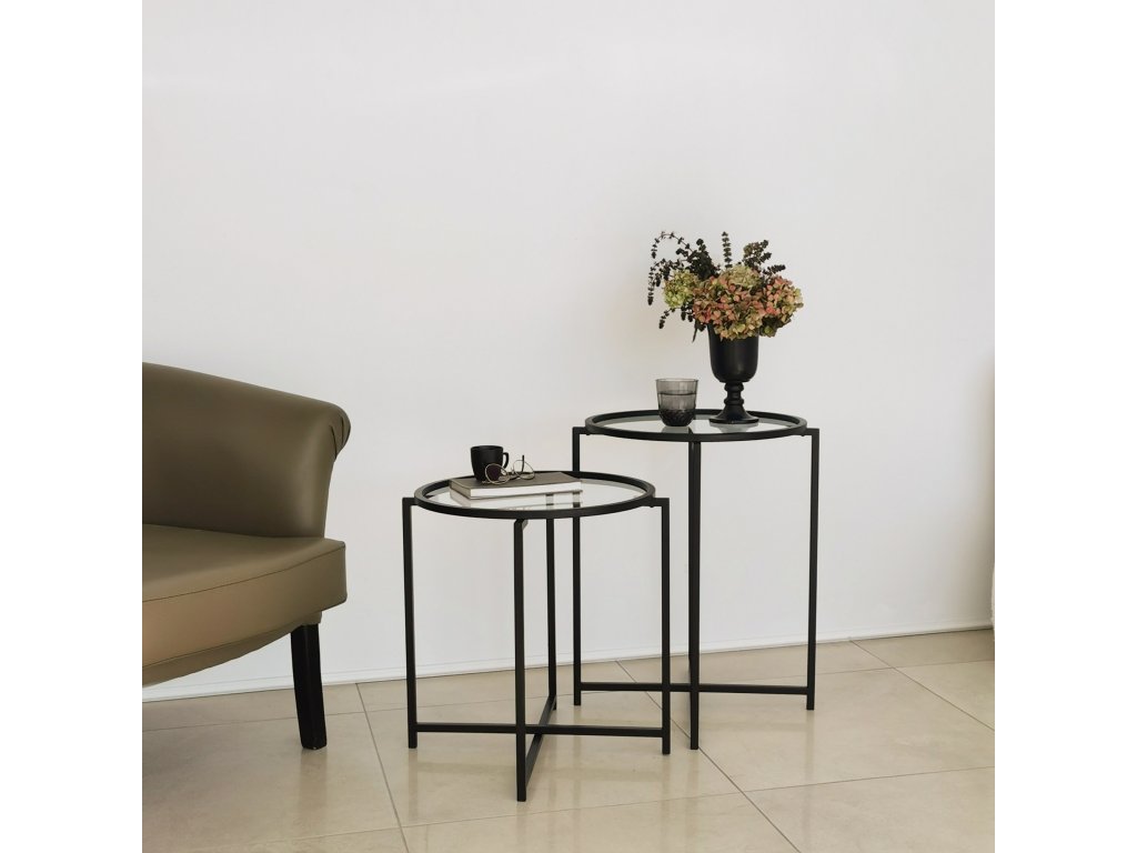 Odkládací stolek S412 je vyrobený ze dvou černých konstrukcí a dvou skleněných desek a mohou být dobrým pomocníkem všude tam, kam je postavíte.