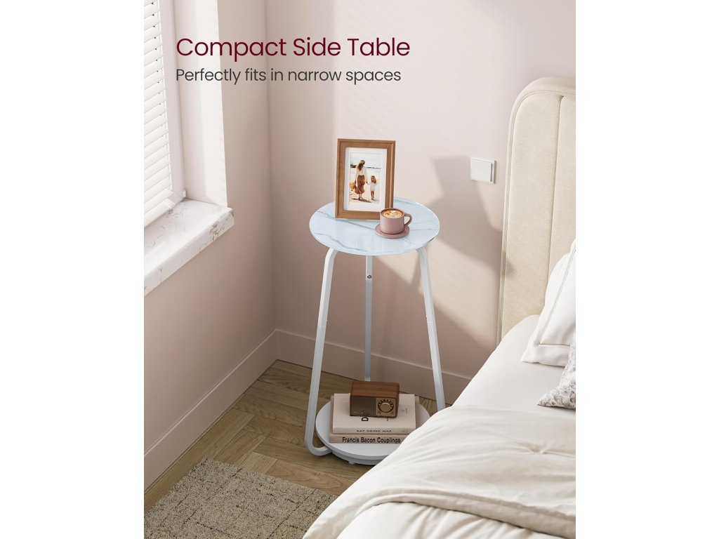 Odkládací stolek se skleněnou deskou kulatý bílý mramor