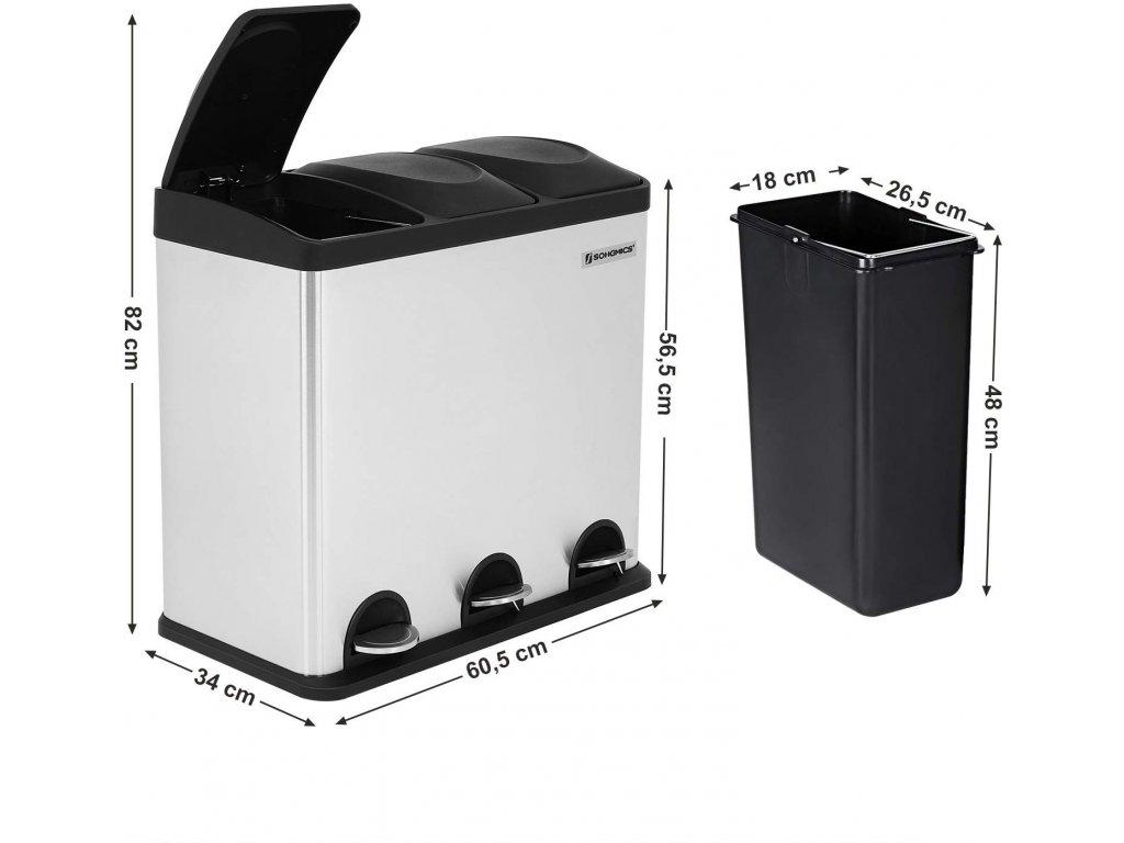 Odpadkový koš na tříděný odpad 3 x 18 L stříbrno/černý