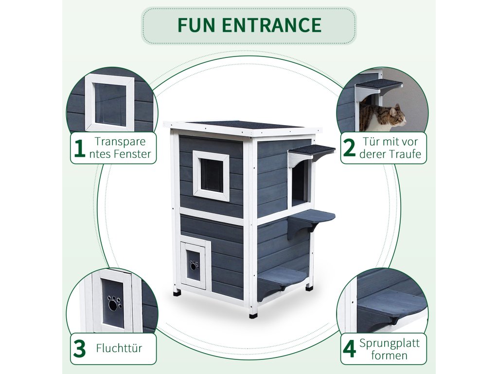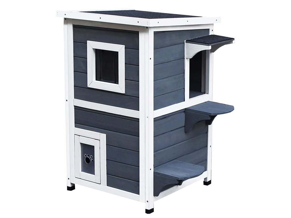 Domeček pro kočky venkovní dvoupatrový dřevěný 51 x 51 x 81 cm šedá bílá