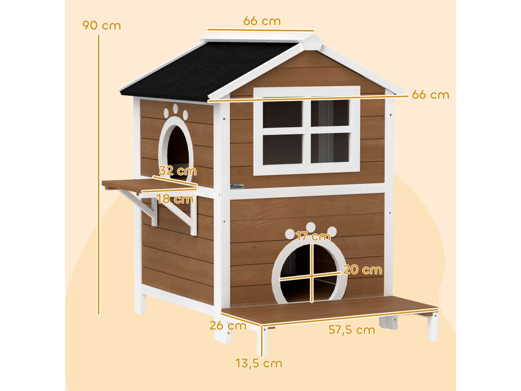 Domeček pro kočky venkovní dvoupatrový s balkonem dřevěný 66 x 66 x 90 cm hnědá