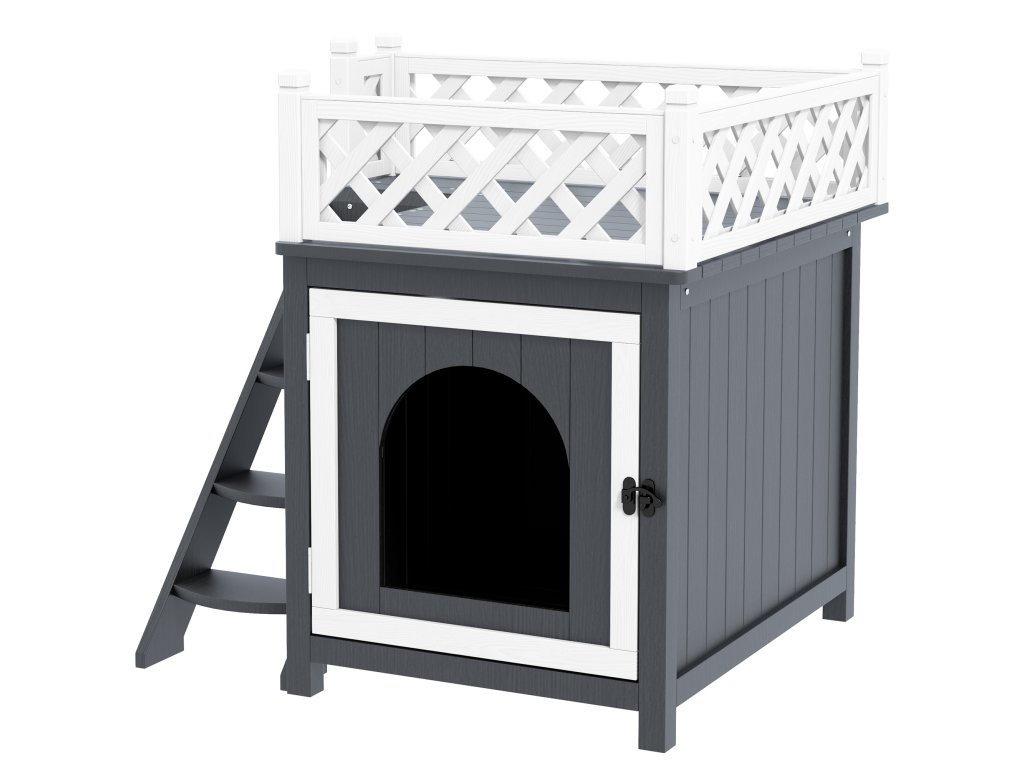 Domeček pro kočky venkovní s balkonem dřevěný 68 x 63 x 69 cm šedá