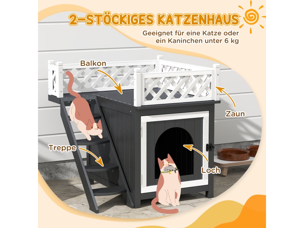 - ✔ Dvoupatrový design domečku pro kočky s balkonem nabízí kočkám více možností odpočinku