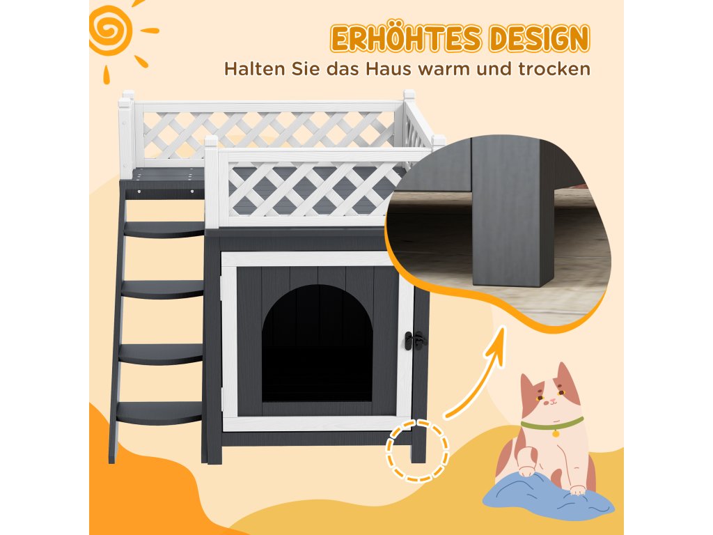 - Díky zvýšenému designu zůstává kočičí domeček v teple a suchu a vytváří tak bezpečné a pohodlné prostředí pro vašeho mazlíčka.