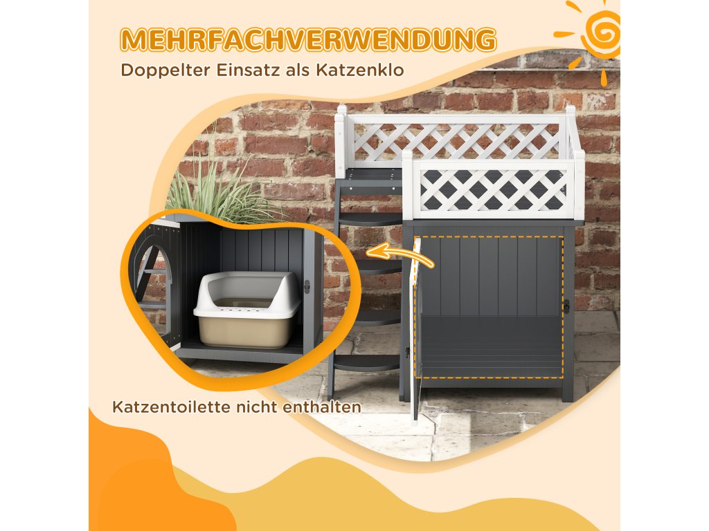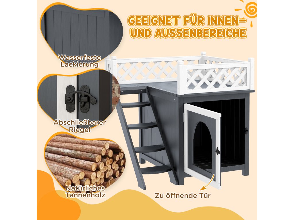 Všestranný venkovní domeček pro kočky slouží také jako nenápadné umístění pelíšku, je vyroben z přírodního jedlového dřeva a je vhodný pro vnitřní i venkovní použití.