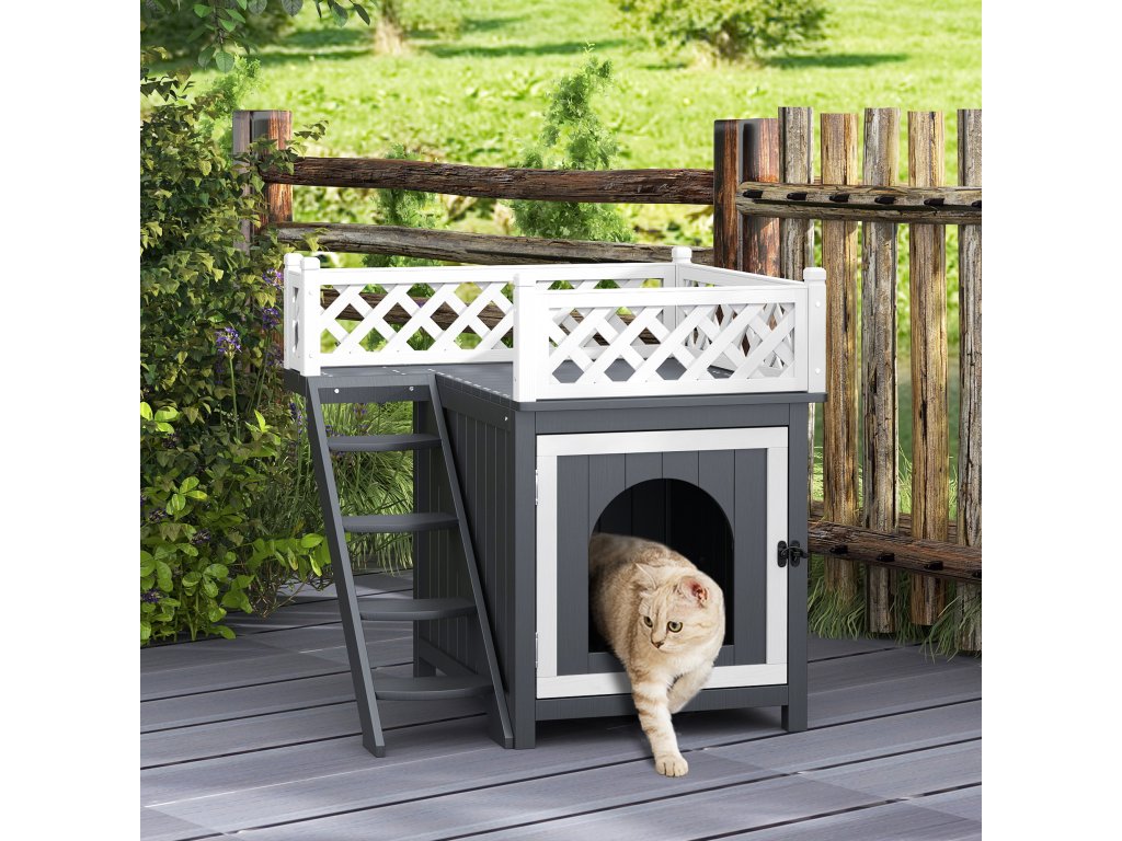- Tento venkovní domeček pro kočky je vyroben z jedlového dřeva a opatřen nátěrem odolným vůči povětrnostním vlivům a je vhodný pro vnitřní i venkovní použití a zaujme svou odolností a přirozeným vzhledem.