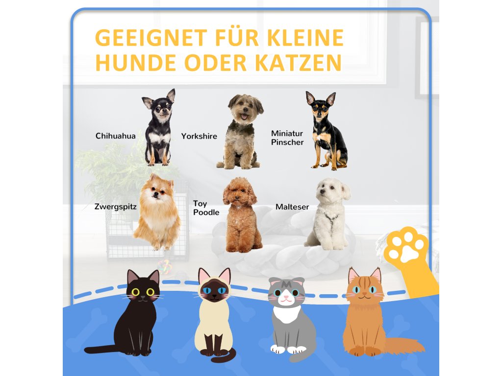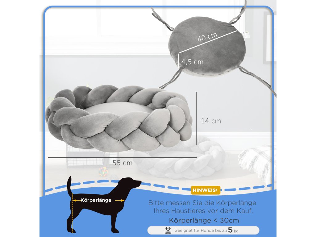 - Silné lano (cca 5 cm) použité k výrobě podložky zajišťuje, že pelíšek odolá každodennímu opotřebení. Je ideální pro malé psy o hmotnosti do 5 kg a délce těla 30 cm a také pro kočky do 5 kg.