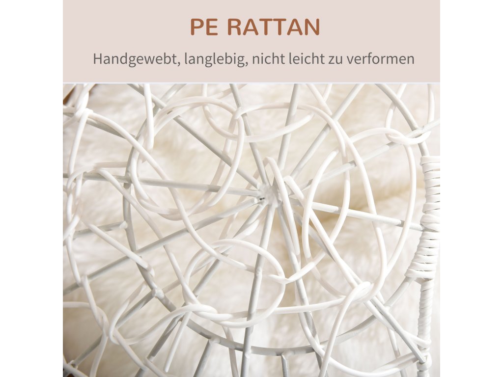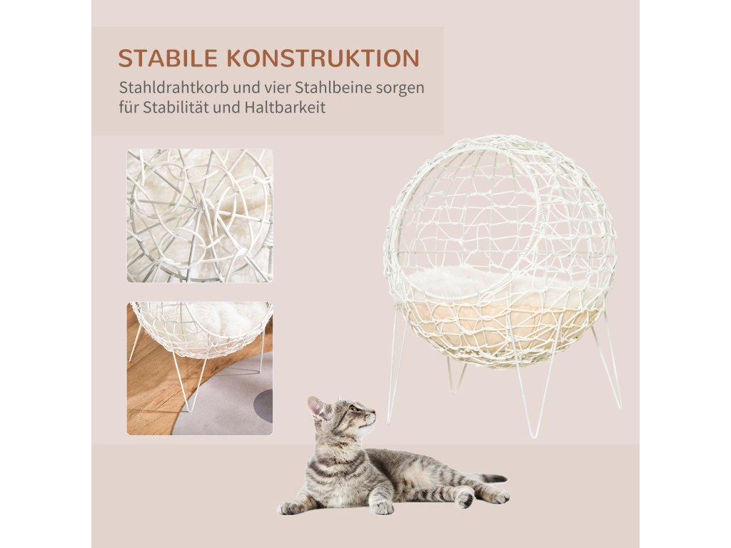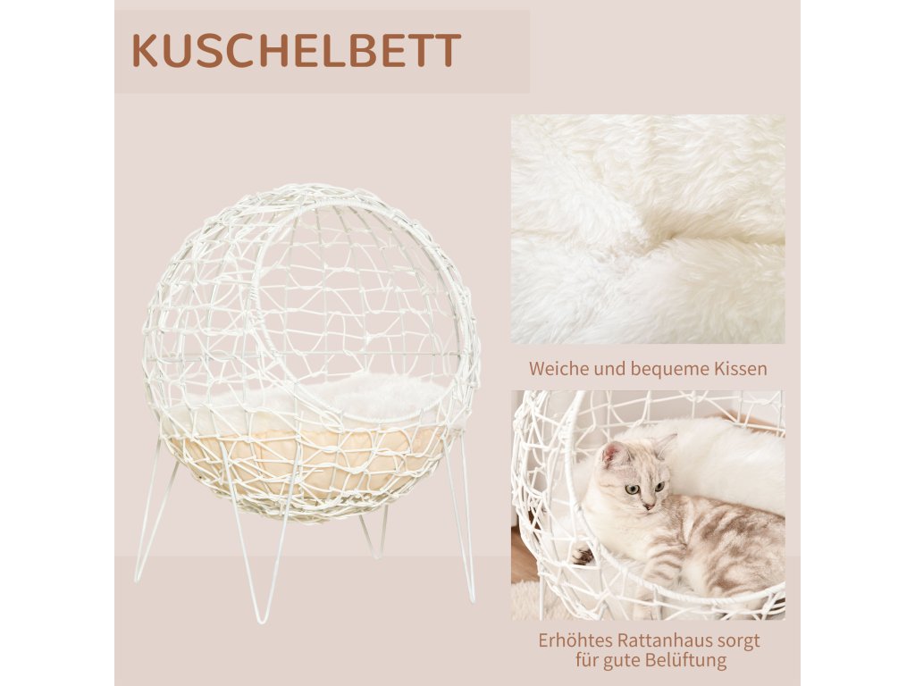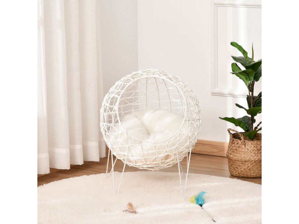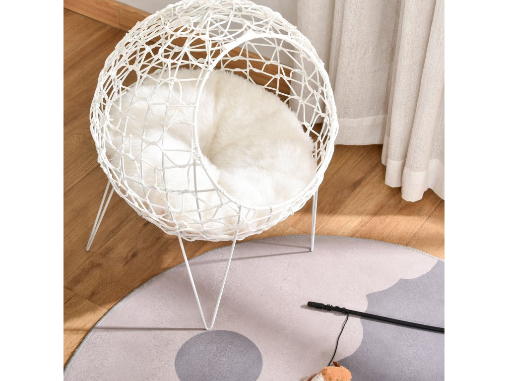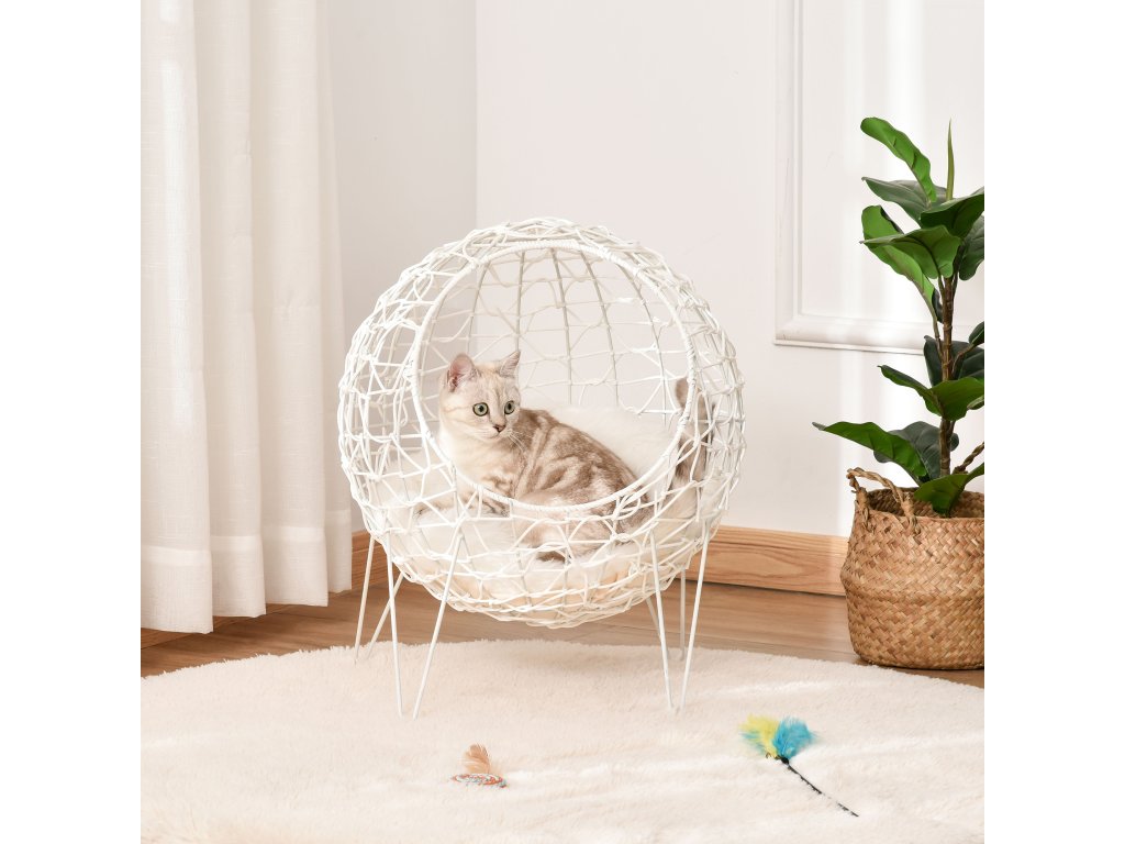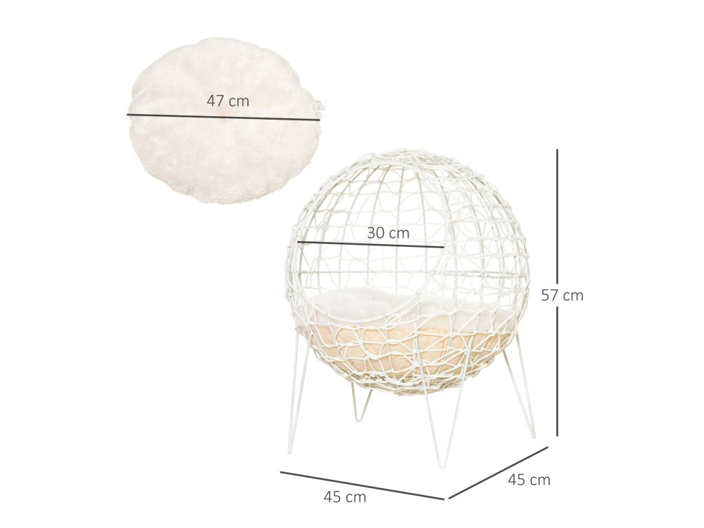 Dejte své kočce to nejlepší místo, kde si může říkat své, s tímto košem pro kočky PawHut. Jeho velký a zaoblený design nabízí vašemu mazlíčkovi dostatek prostoru uvnitř a velký polstrovaný polštář ve spodní části, vyrobený ze směsi polyesteru a bavlny, zajišťuje dostatek pohodlí. Rám je vyroben z tkané oceli a ratanu, s otvory po celém obvodu a zvýšeným designem, který umožňuje průchod vzduchu.