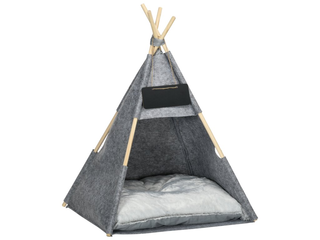 Trendy zvířecí stan v provedení teepee se skládá ze stabilní konstrukce z robustní plsti a borovicového dřeva. Integrovaný polštář nabízí vašemu mazlíčkovi útulné místo na spaní. Vaši mazlíčci si mohou hrát, dovádět a spát v tomto stanu pro domácí mazlíčky od PawHut.