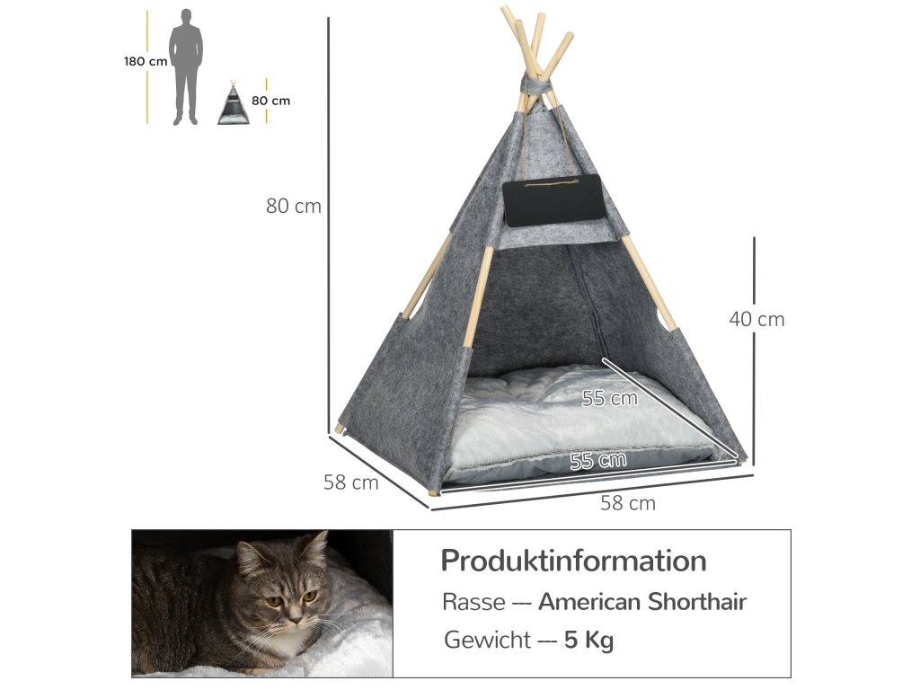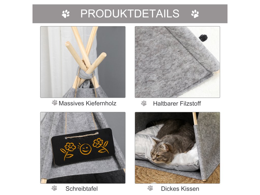 - Zahrnuje měkký polštářek pro útulné místo na spaní. Materiál polštáře a plsti lze prát v pračce. Materiál je vyroben z odolné plsti a borového dřeva.