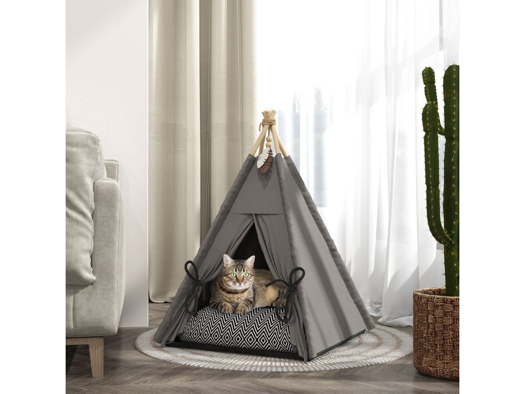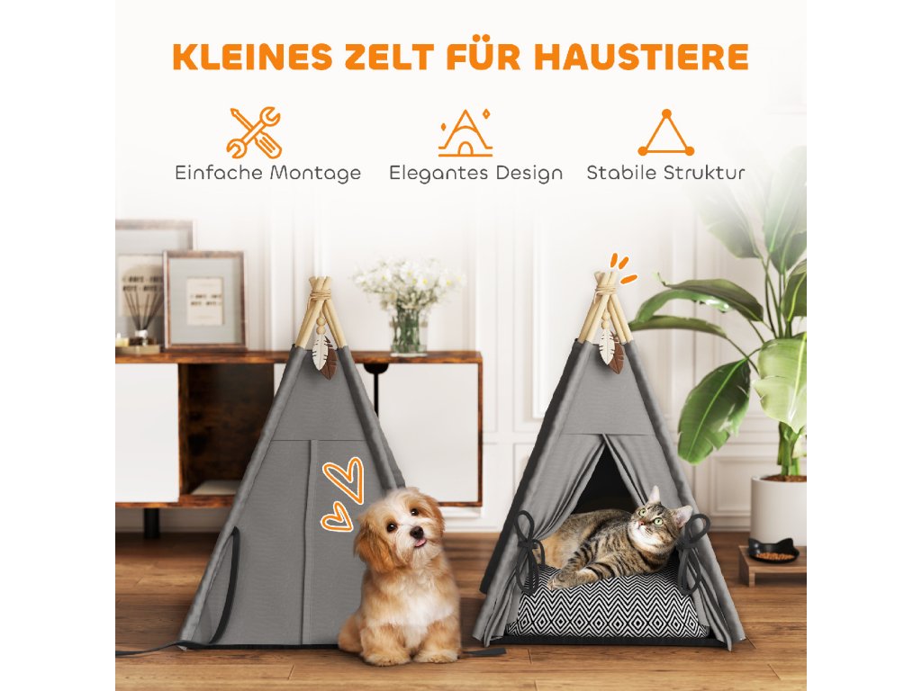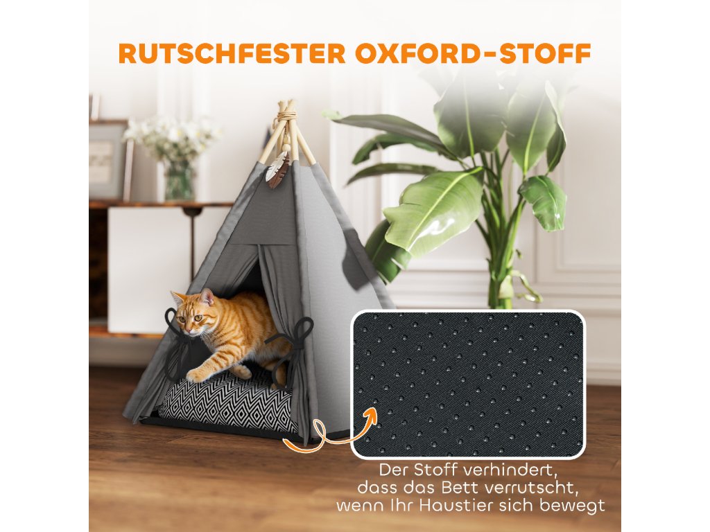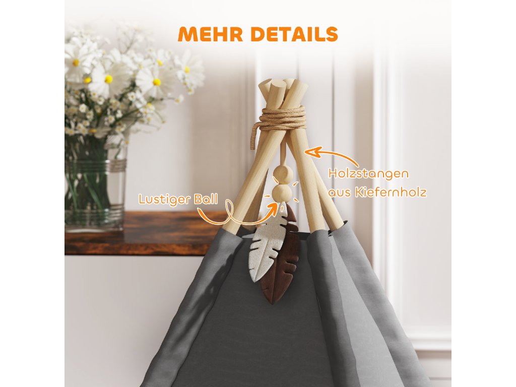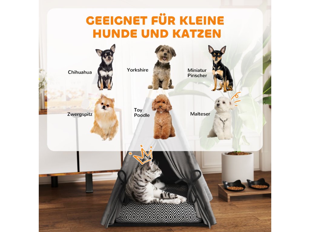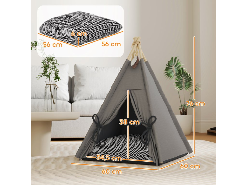 Pohodlný stan je vytvořen podle vzoru teepee stanu a nabízí vaší kočce nebo malému psovi příjemné, útulné útočiště.