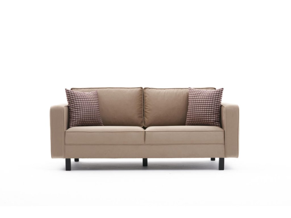 KALE je elegantní dvoumístná designová pohovka s područkami a pohodlným krémovým sametovým polstrováním.