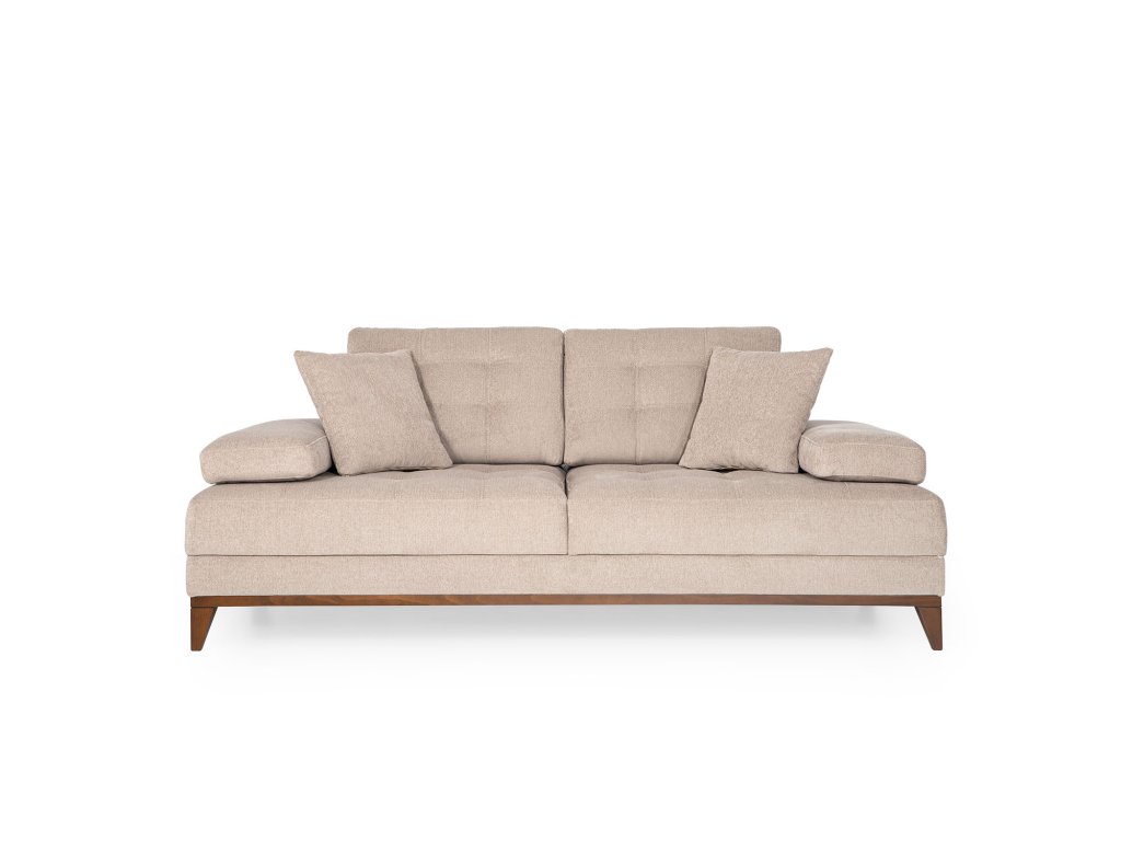 Dvoumístná pohovka SONYA je vyrobená z dřevěného nosného rámu a elegantního krémového polstrování.