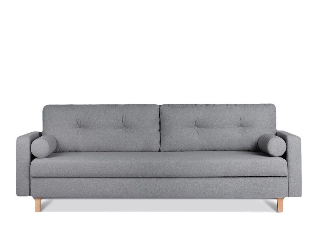 Stylová pohovka je jedním z nejdůležitějších prvků dobře vybaveného obývacího pokoje. Skandinávská pohovka z kolekce ERISO má funkci spánku - bude ideální pro hosty, kteří vás navštíví přes noc. Mechanismus rychlého, automatického rozložení - sklopením opěradla dopředu usnadňuje používání. Vnitřní úložný prostor poskytne potřebný prostor pro uložení peřin. Čalounění vyrobené z vysoce kvalitní tkané látky se vyznačuje trvanlivostí a odolností proti poškození. Dva polštáře na zádech a dva dekorativní polštáře zvyšují pohodlí při používání této moderní pohovky. Díky zipům skrytým v estetických polštářích lze snadno odstranit a rychle prát. Pohodlí zajišťuje středně tvrdé sedadlo vyrobené z pružinové lamely a polyuretanové pěny. Díky této moderní skandinávské pohovce se každý bude cítit uvolněně a pohodlně!