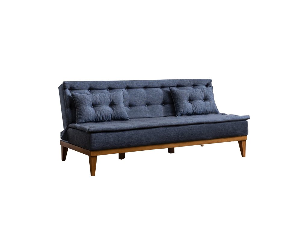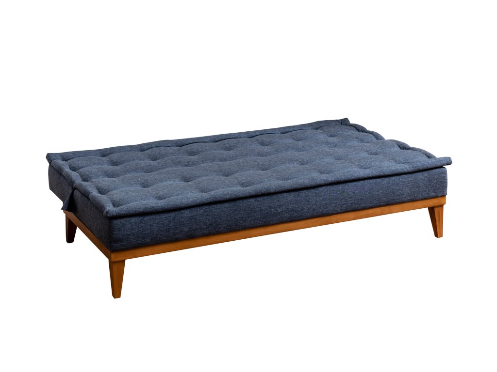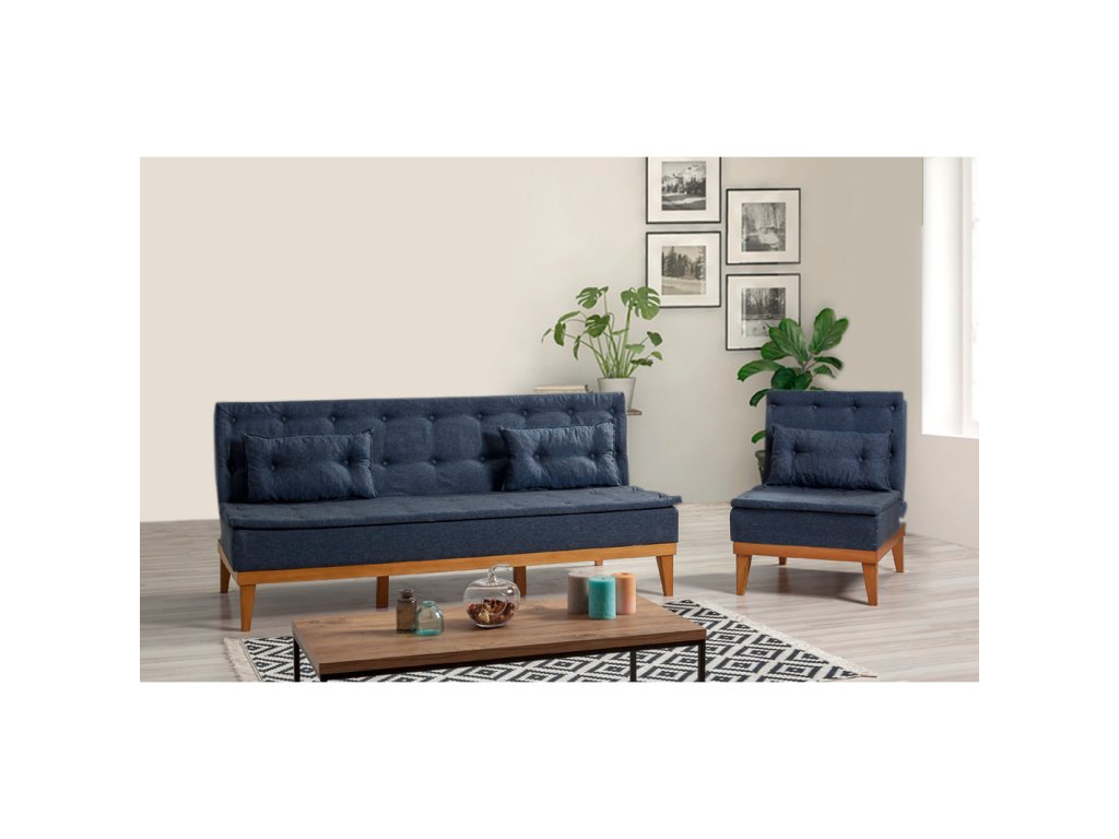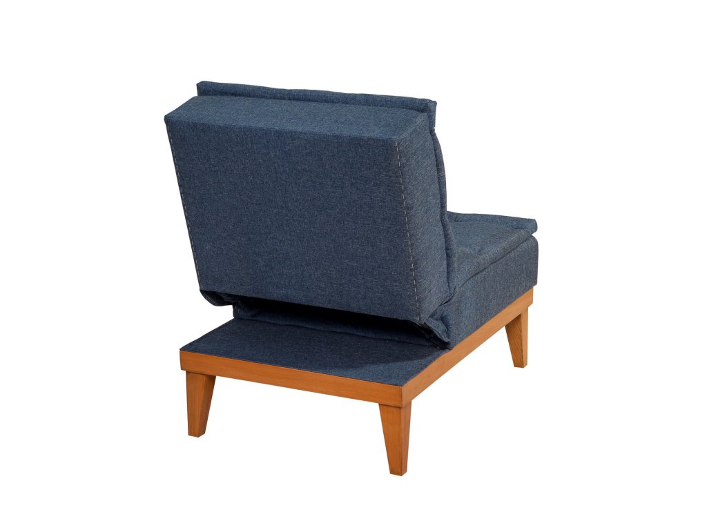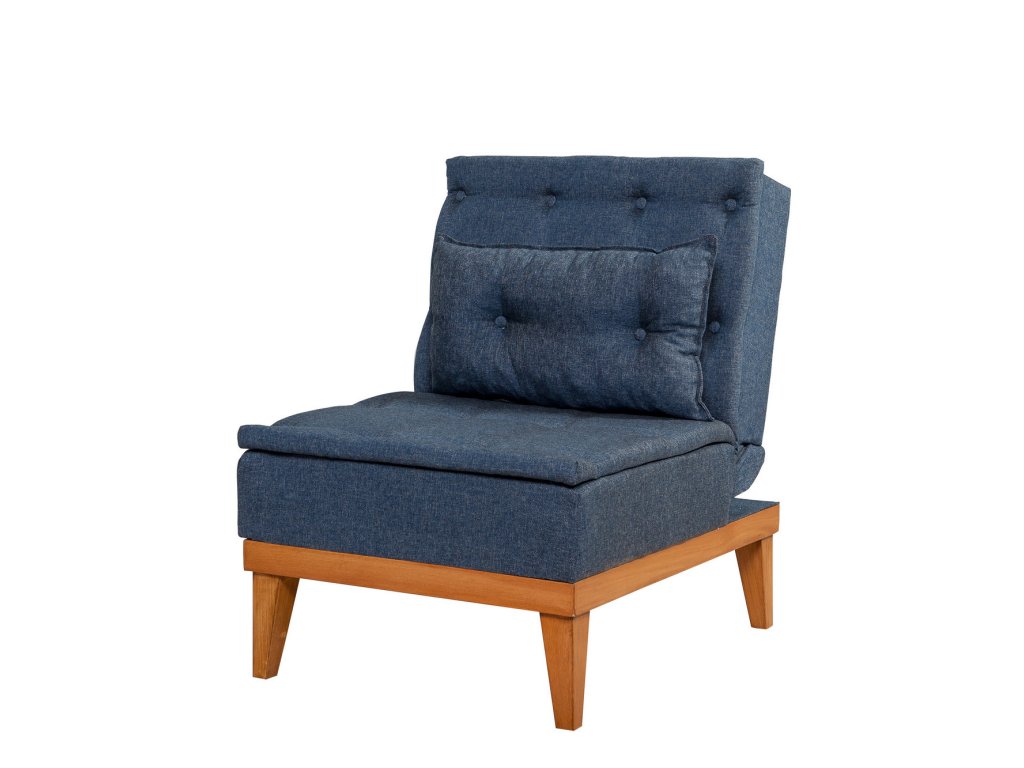 Rám: HABROVÉ DŘEVO, 28 DNS pěna, Látka: 100% LEN modré barvy a dřevěné nohy