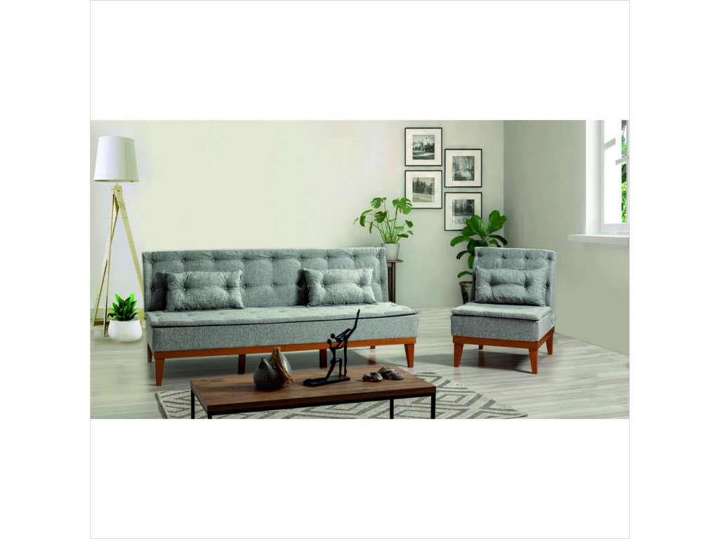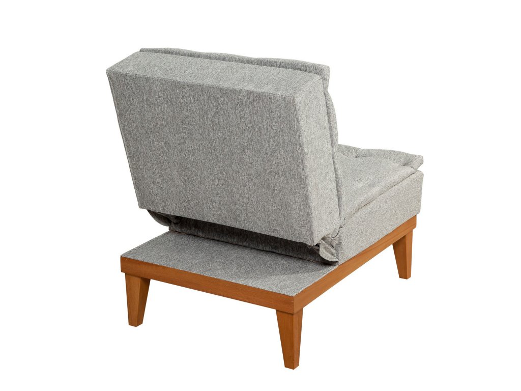 Rám: HABROVÉ DŘEVO, 28 DNS pěna, Látka: 100% LEN světle šedé barvy a dřevěné nohy
