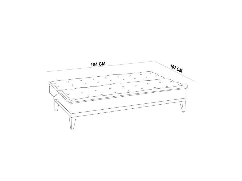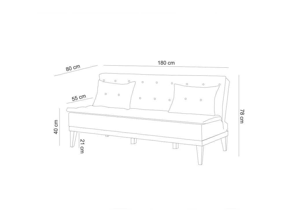 Rozměr pohovky: Šířka: 180 cm Výška: 78 cm Hloubka: 80 cm Hloubka sedáku: 55 cm Výška sedáku: 40 cm Rozměr rozkládací pohovky: Šířka: 184 cm Hloubka: 107 cm Výška nohou: 21 cm