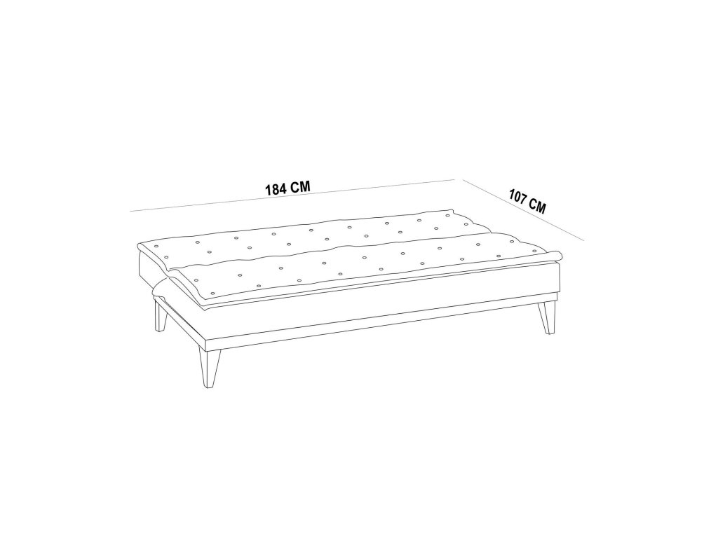 Rozměr pohovky: Šířka: 180 cm Výška: 78 cm Hloubka: 80 cm Hloubka sedáku: 55 cm Výška sedáku: 40 cm Rozměr rozkládací pohovky: Šířka: 184 cm Hloubka: 107 cm Výška nohou: 21 cm