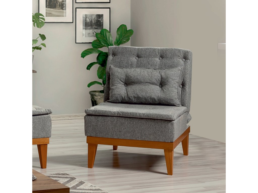 Rám: HABROVÉ DŘEVO, 28 DNS pěna, Látka: 100% LEN tmavě šedé barvy a dřevěné nohy