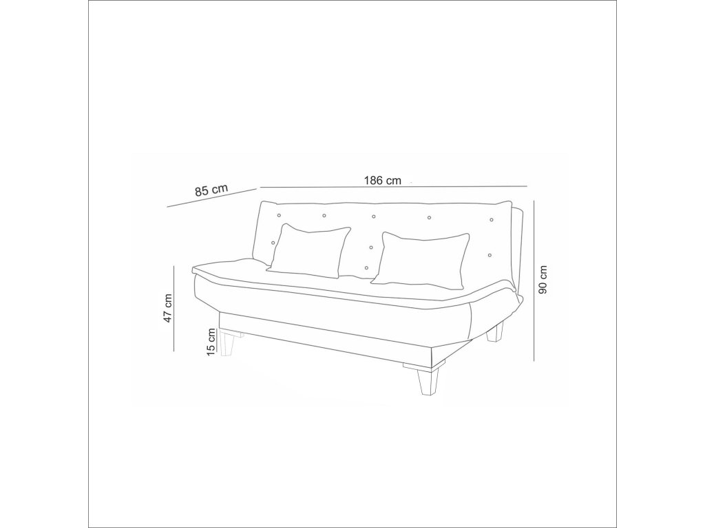Rozměr pohovky: Šířka: 190 cm Výška: 90 cm Hloubka: 85 cm Sedačka Výška sedáku: 47 cm Pohovka Hloubka sedáku: 56 cm Sedačka Velikost lůžka: Šířka: 190 cm Hloubka: 106 cm
