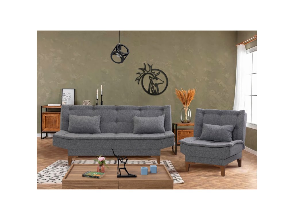 Představujeme tmavě šedou pohovku s křeslem SANTO jakožto ztělesnění pohodlí a stylu. Tato sedací souprava, vyrobená s rámem ze 100% bukového dřeva a čalouněná luxusní látkou v kombinaci 100% polyuretanu a akrylu, které vyzařují eleganci a odolnost.