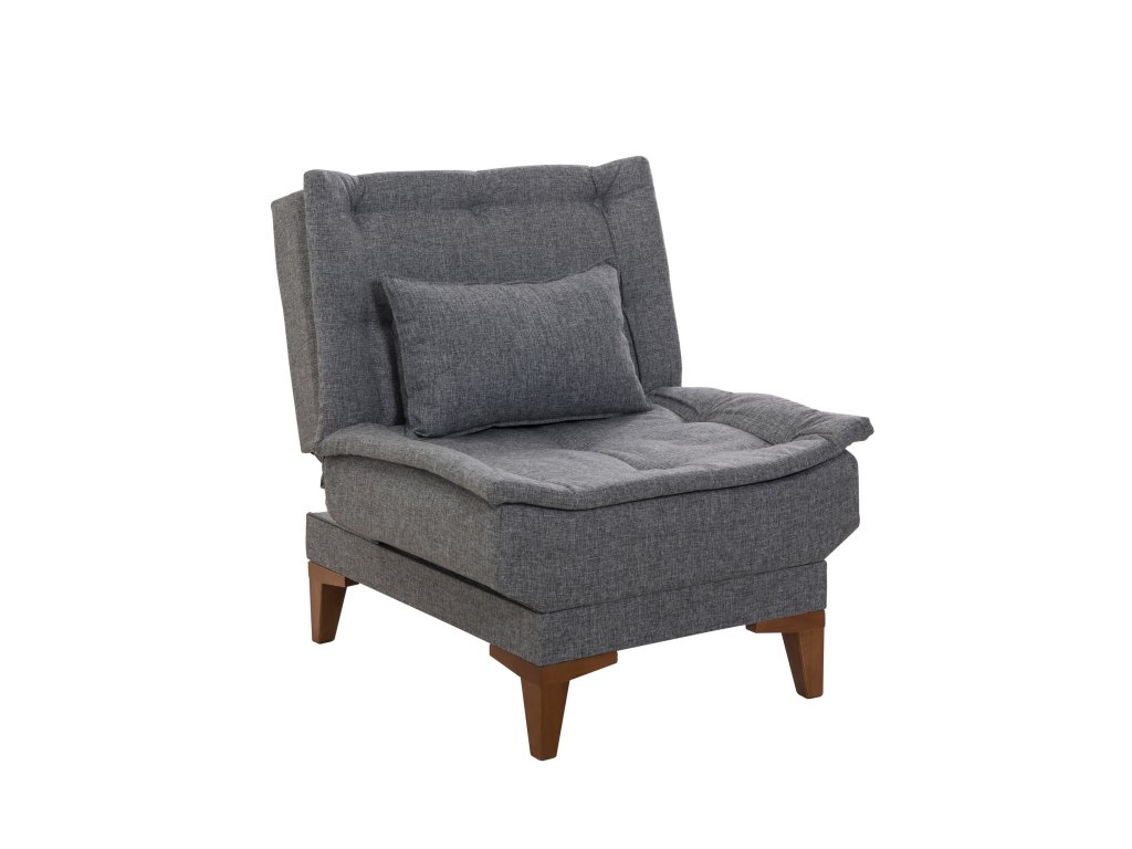 Soupravu doplňuje stylové rozkládací křeslo, které měří 75 cm na šířku, 90 cm na výšku a 70 cm do hloubky. Jeho výška sedáku odpovídá výšce pohovky, která je 47 cm, a hloubka sedáku je stejná jako u pohovky, tedy 56 cm. Toto křeslo, které v sobě spojuje pohodlí a sofistikovanost, je ideální pro vytvoření útulného čtecího koutku nebo doplnění obývacího prostoru o další místa k sezení.