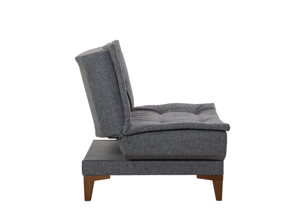 Rám: 100% BUK, 28 DNS Pěna, Látka: 100% tmavě šedý POLYURETAN / AKRYL, Plastové nohy (15 cm)