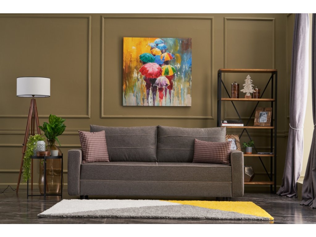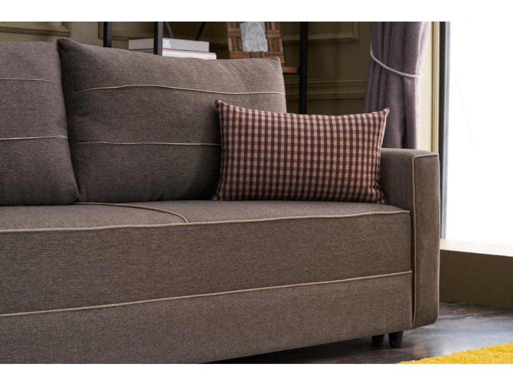 Pohovka ECE s velkými opěrnými polštáři a možností rozkladu na lůžko.