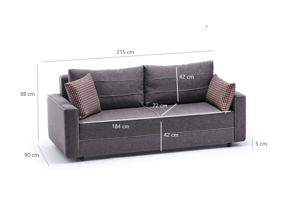 Hloubka sedu: 72 cm Výška sedu: 42 cm Délka sedu: 184 cm