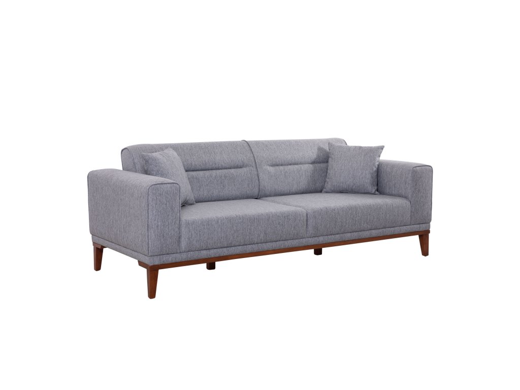 Rám: 100% HABR, 28 DNS pěna na sezení i na záda, Látka: 100% POLYESTER šedé barvy, Dřevěné nohy: 17 cm
