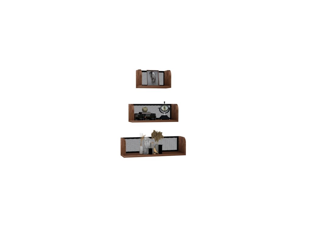 Tři nástěnné police v sestavě BUZIM v dekoru ořech.