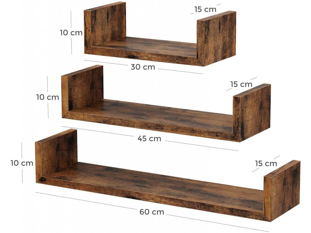 - Střední velikost police: 45 x 15 x 10 cm (Š x H x V)