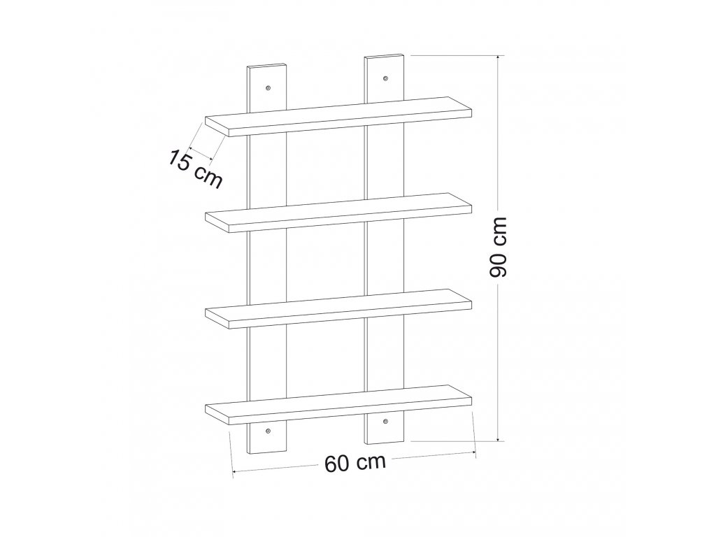 Nástěnná police LAUREL jsou čtyři police naskládané nad sebou a poskytující dostatek úložného prostoru.